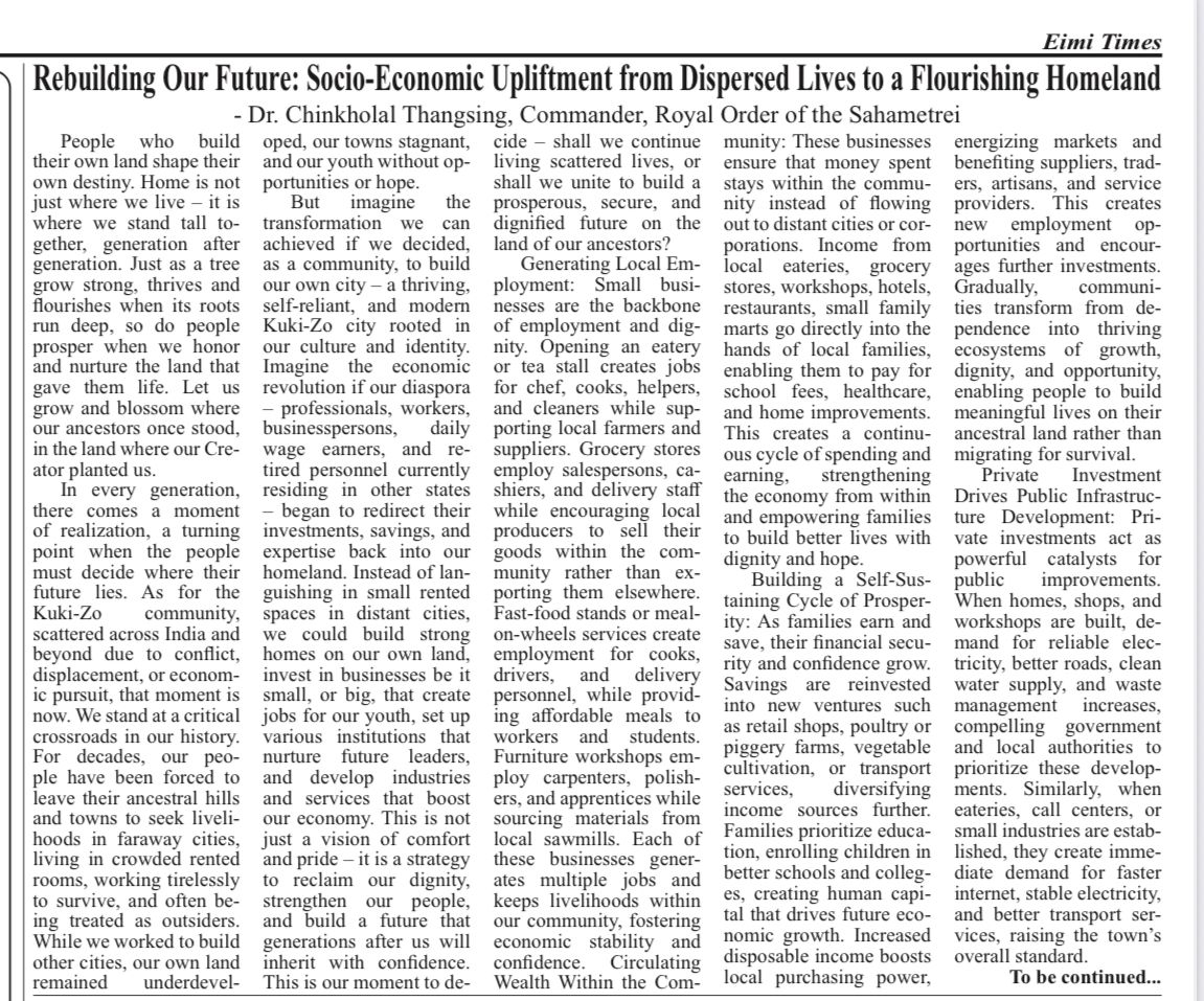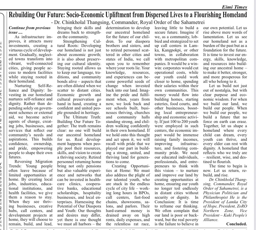 Home — Newspaper Clips — Rebuilding Our Future: Socio-Economic Upliftment from Dispersed Lives to a Flourishing Homeland